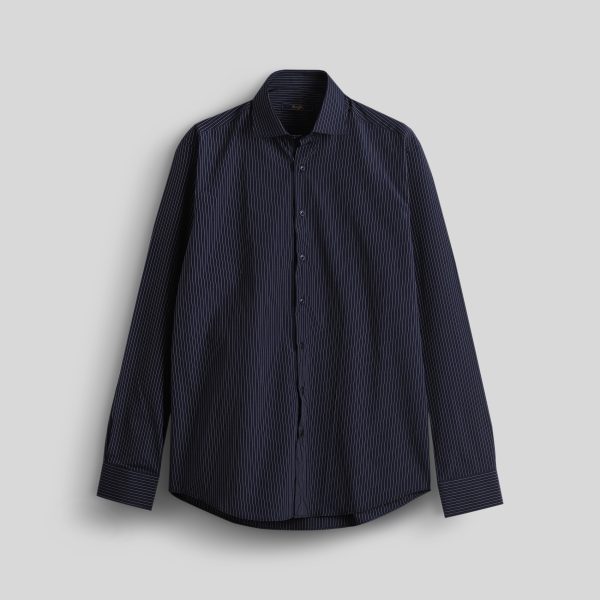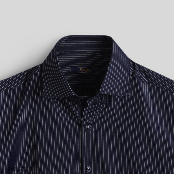 پیراهن آستین بلند سرمه ای راه راه پارچه ایتالیا کد:11118
