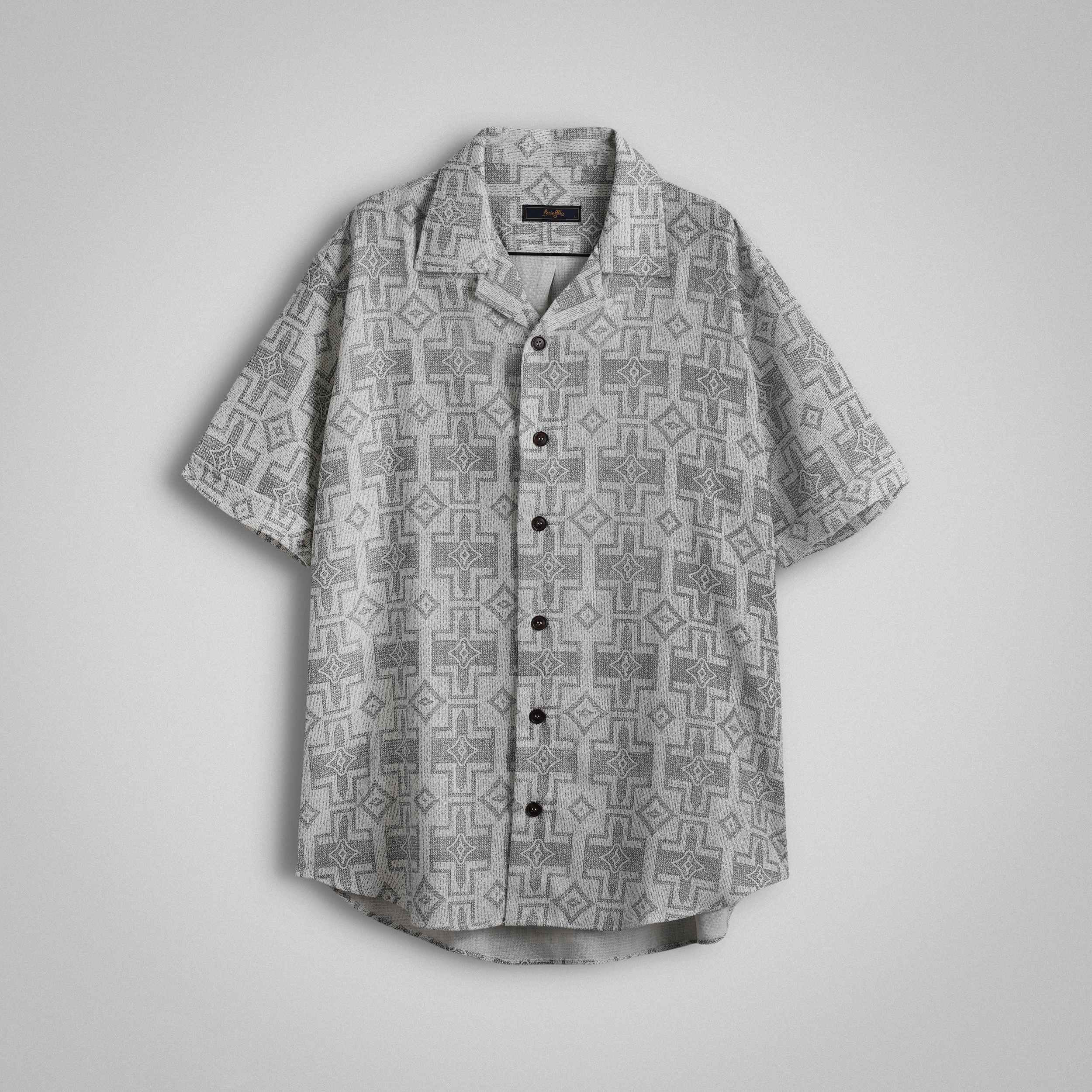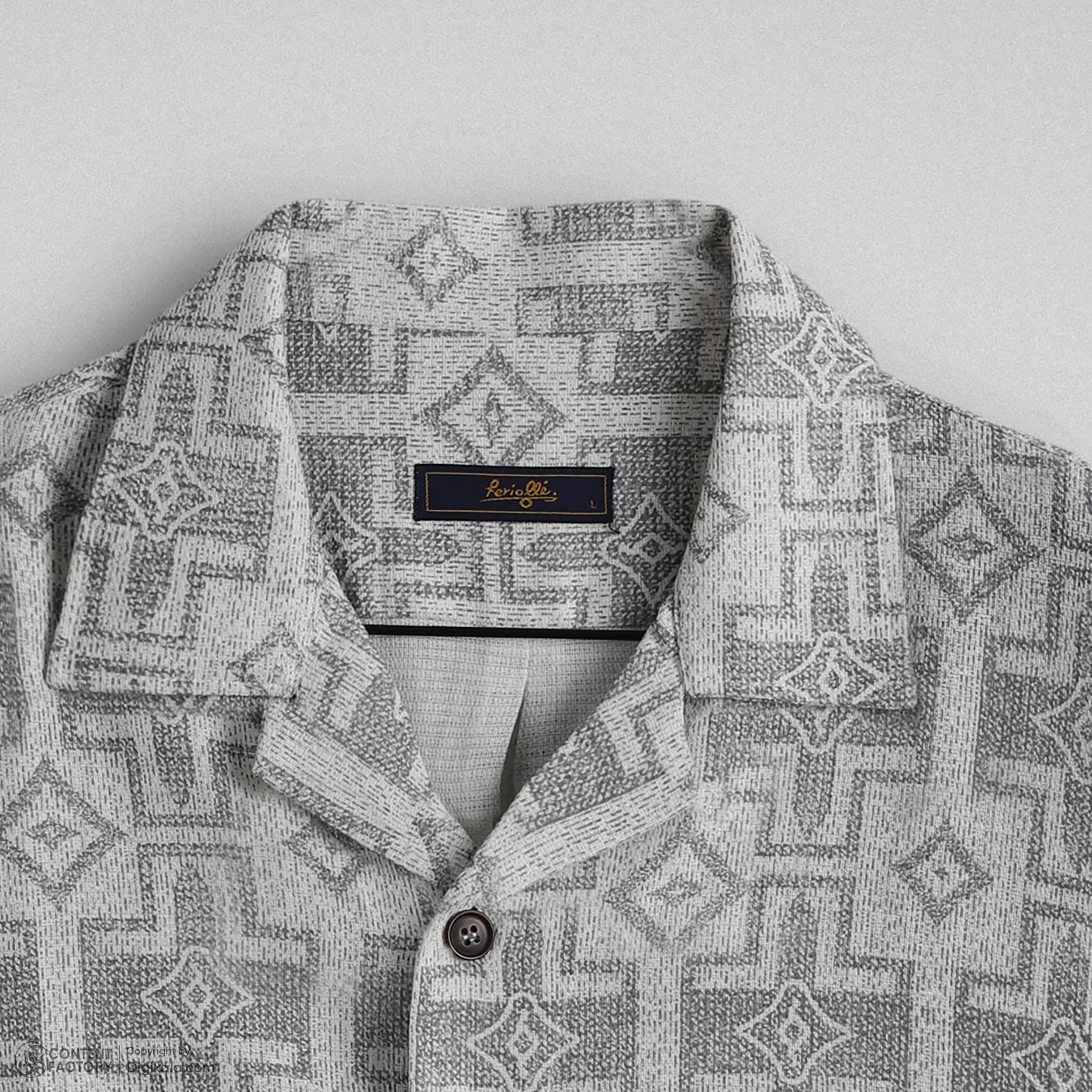 پیراهن آستین کوتاه کنفی یقه شکاری طرحدار طوسی کد : 11119